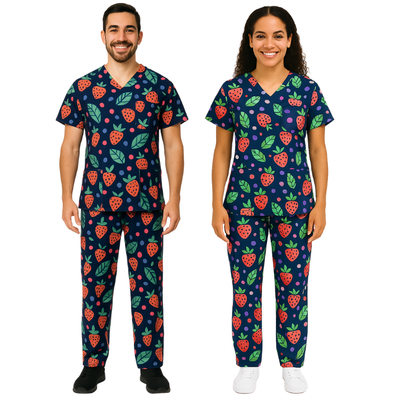 Covered in cheerful berry-themed prints, our Berry Bliss Scrub Set brings a pop of fruity fun to the workday. The soft, breathable fabric and easy unisex fit ensure comfort from start to finish. Enjoy it as part of our Buy 1 Get 1 Free promo and double your daily dose of bliss.  Double your style and comfort without doubling the price! For a limited time only, when you buy one of our unisex scrub sets — choose from Panda Express, Easter Bunny, Love Hearts, Bear Love, Sweet Treat, Desert Bloom, Berry Bliss, Pony Club, or Sleepy Sheep — you’ll get another set absolutely free! Mix, match, and share the love with your work bestie or treat yourself to two looks that’ll keep you feeling comfy and looking sharp all season long.
